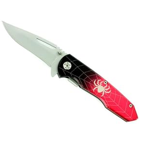 This is the closest you can get to a street legal switch-blade. With spring-assisted technology, the SPIDER deploys quickly and easily with one hand. This razor-sharp knife can be deployed using the index finger for a sudden release of the blade by flipping the lever at the top of the knife. Of course, when a job calls for more deliberate actions, you can also open this knife in the traditional way, using the thumb stud. The SPIDER SPRING-ASSIST KNIFE features a high carbon 440 stainless steel blade that stays sharp long. A sharp knife is not only more useful than a dull knife, it's also safer to use. With a strong, sharp blade and lightweight aluminum handle, you can make the cuts you want quickly and efficiently. Whether you're finishing up a weekend around the house or heading up a mountain rescue operation, this strong yet lightweight and easy-to-use knife features a richly colored SPIDER design which is a fun and unique. The SPIDER is a knife that you can be proud to own and will give you long lasting pleasure.